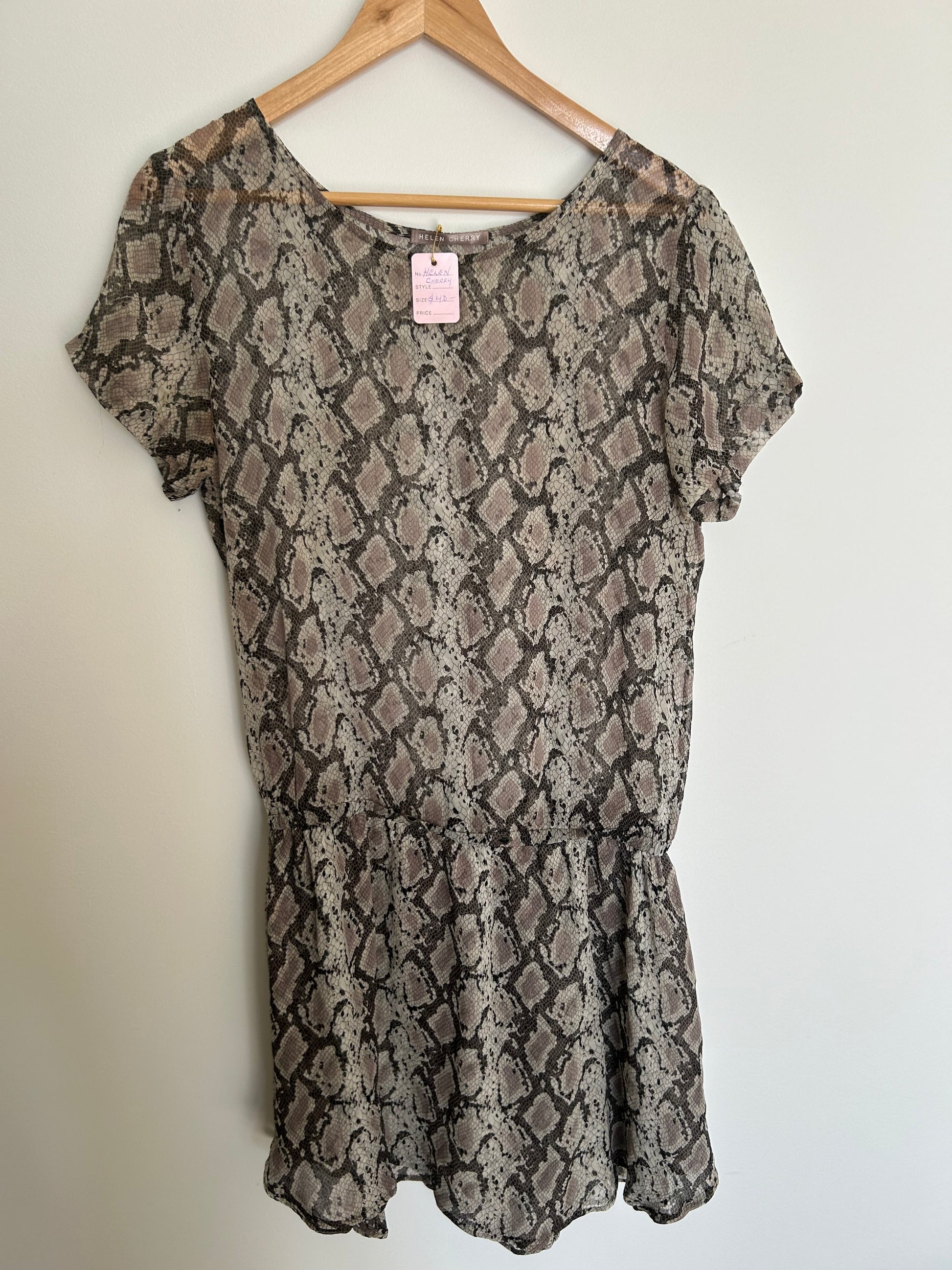 Snake print smock. No size on label. Would fit 6-10 depending on desired fit
